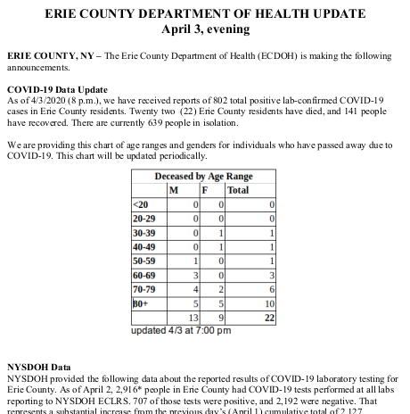 Erie County Department Of Health Update April 3 Evening Erie County Ny Department Of Health