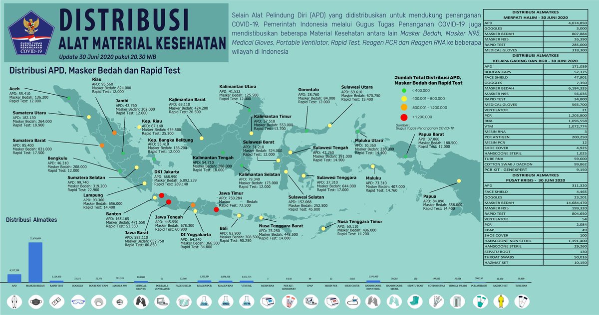 Bnpb Indonesia على تويتر Update Distribusi Material Kesehatan Dalam Mendukung Penanganan Covid 19 Di Indonesia Per Tanggal 30 Juni 2020 Pukul 20 00 Wib Bersatulawancovid19 Https T Co Ieyk6xumyv