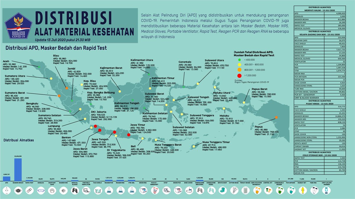 O Xrhsths Bnpb Indonesia Sto Twitter Update Distribusi Material Kesehatan Dalam Mendukung Penanganan Covid 19 Di Indonesia Per Tanggal 13 Juli 2020 Pukul 21 30 Wib Bersatulawancovid19 Https T Co Hfvcglqdep