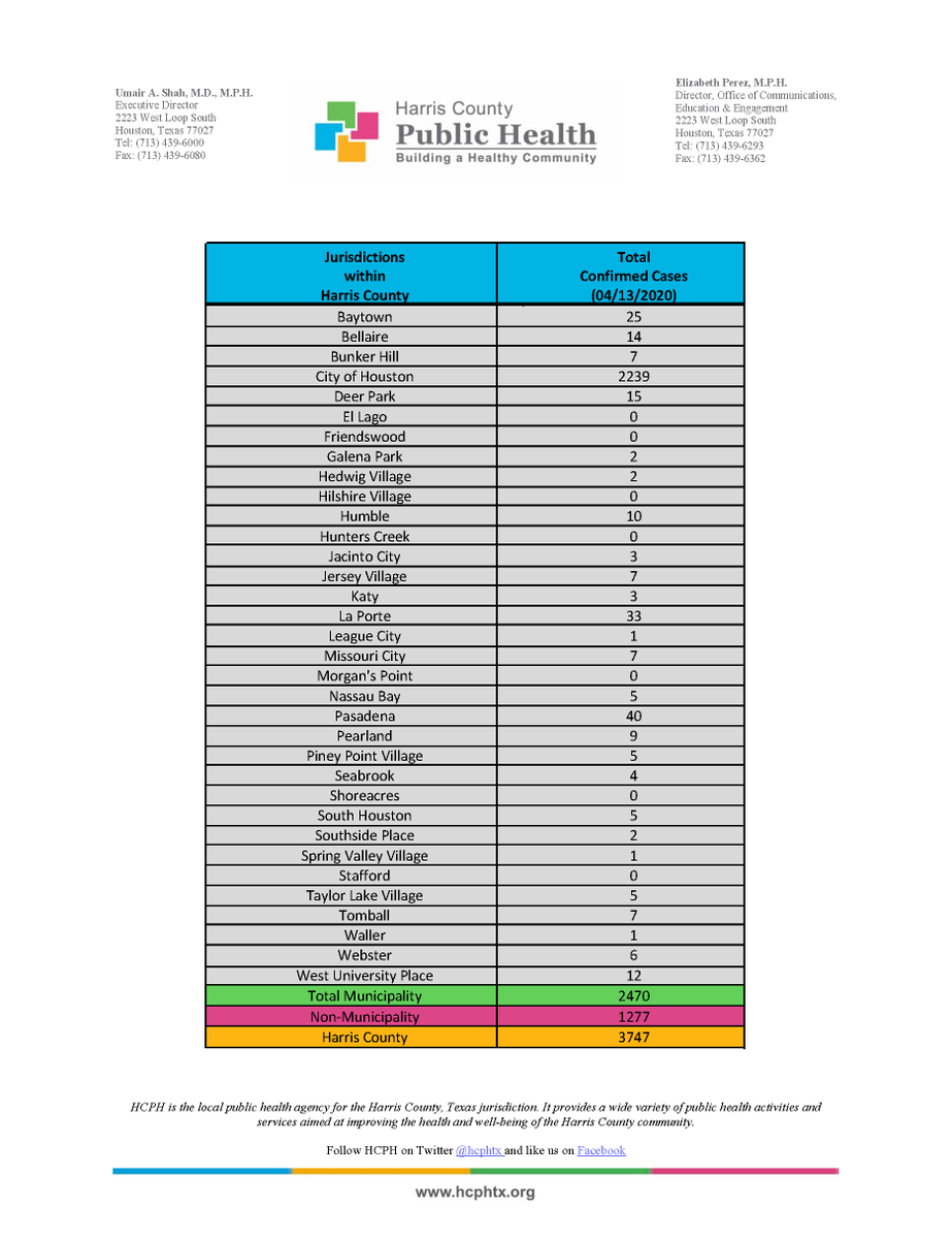 Harris County Public Health Socialdistance On Twitter As Of April 13 4 Pm There Are 3 747 Confirmed Cases Of Covid19 In Houston Harris County And 46 Deaths 642 Patients Have Recovered Our Integrated Data
